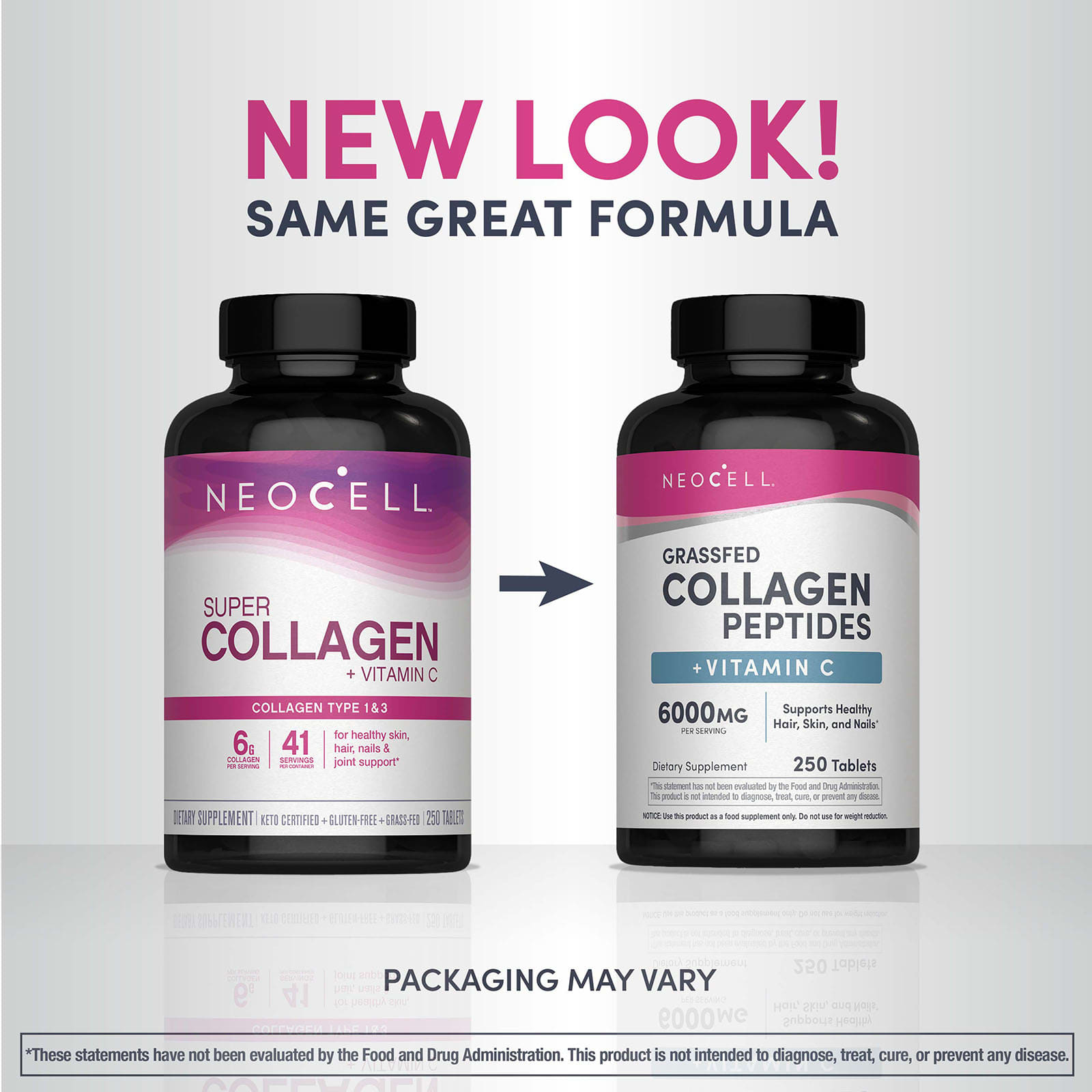 NeoCell Peptídeos de Colágeno de Gado Criado no Pasto + Vitamina C 250 Comprimidos – NeoCell Suplementos Ossos, Articulações e Cartilagem Colágeno, Suplementos.