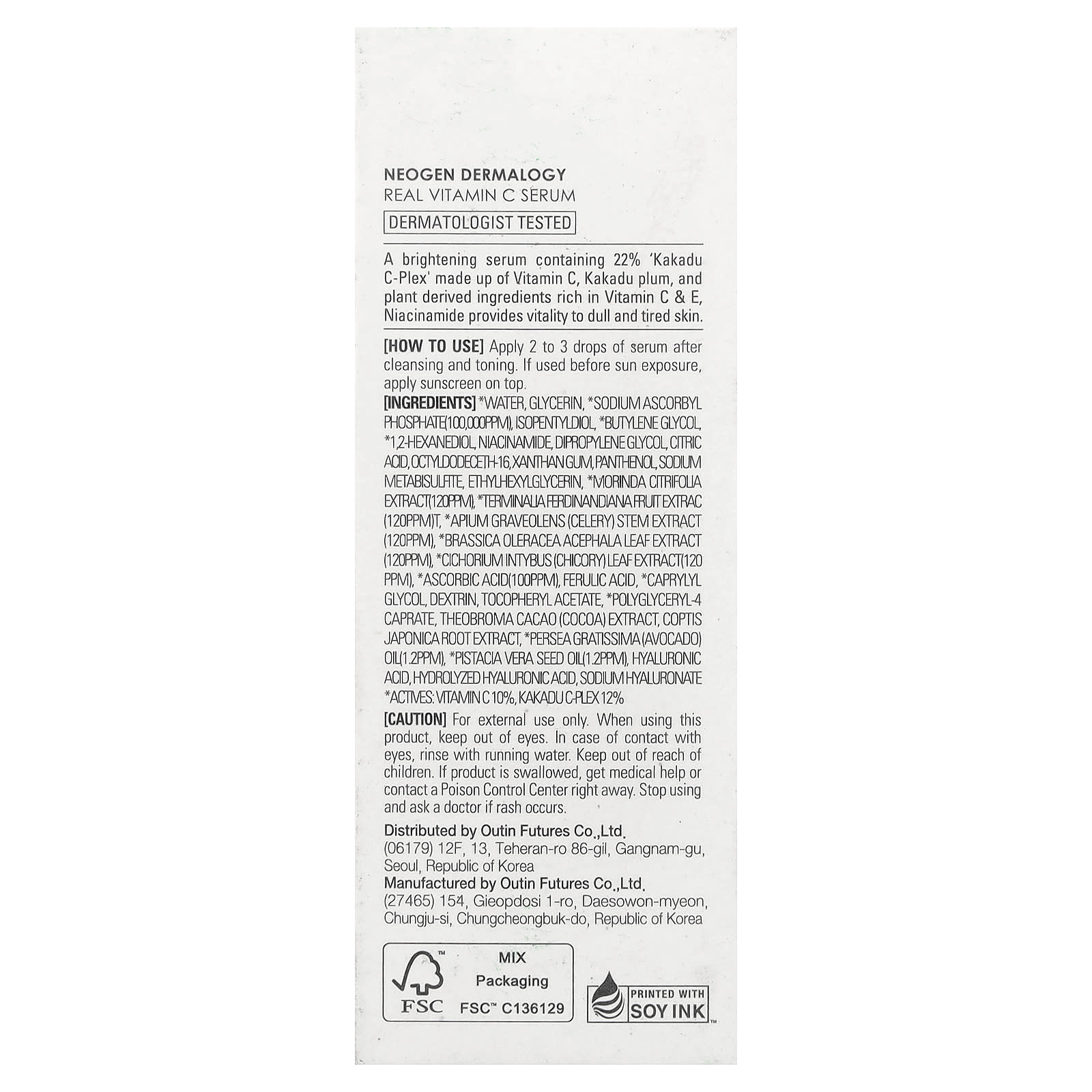 Neogen Sérum com Vitamina C Real 32 g (112 oz) – Neogen Beleza Tratamentos e Séruns Séruns Faciais Séruns de Vitamina C Séruns com vitamina C K-Beauty.