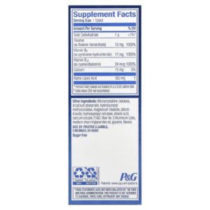 Celulose microcristalina, fosfato de cálcio dibásico, hidroxipropilmetilcelulose, estearato de magnésio, dióxido de silício, hiprolose, ácido esteárico, silicato de cálcio, Lago de Alumínio FD e C Azul No. 2, óleo de triglicerídeos de cadeia média, glicerina, sabores.