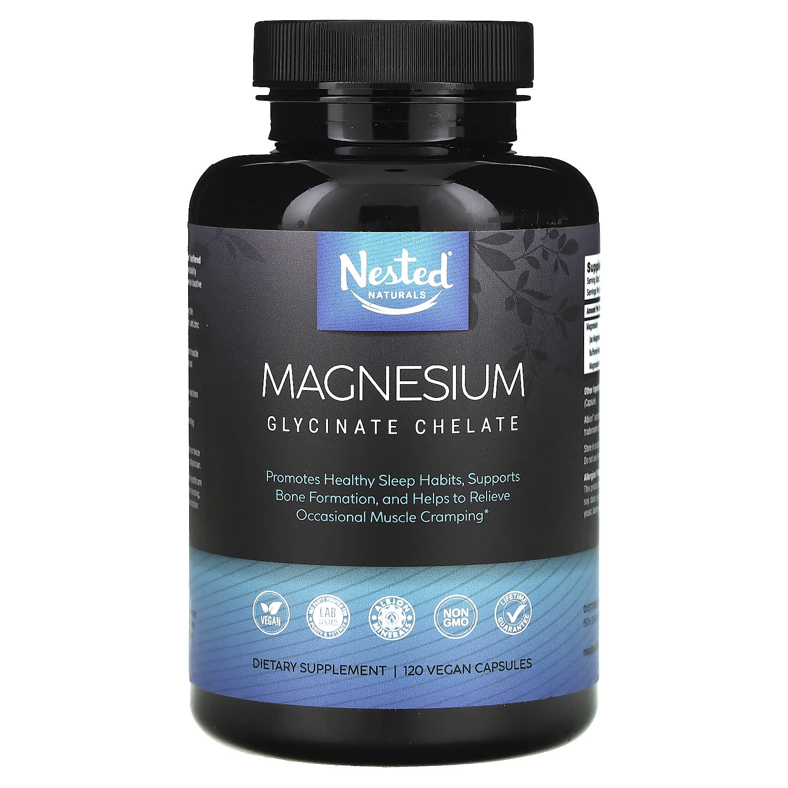 Nested Naturals Magnésio Glicinato Quelato 120 Cápsulas Veganas (100 mg por Cápsula) – Nested Naturals Suplementos Minerais Magnésio Glicinato de Magnésio.