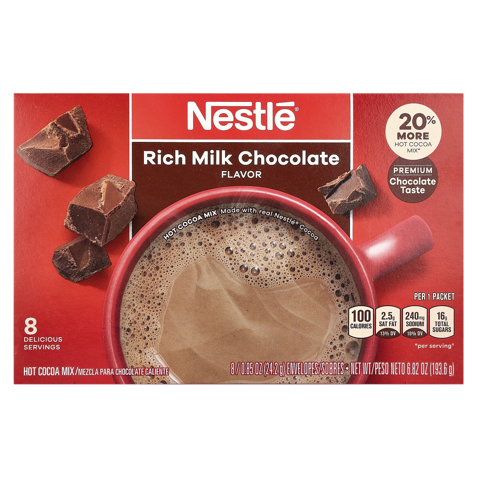 Nestle Hot Cocoa Mix Chocolate ao Leite Nutritivo 8 Envelopes 242 g (085 oz) Cada – Nestle Hot Cocoa Mix Alimentos Chás e bebidas Cacau em Pó e Chocolate Quente.