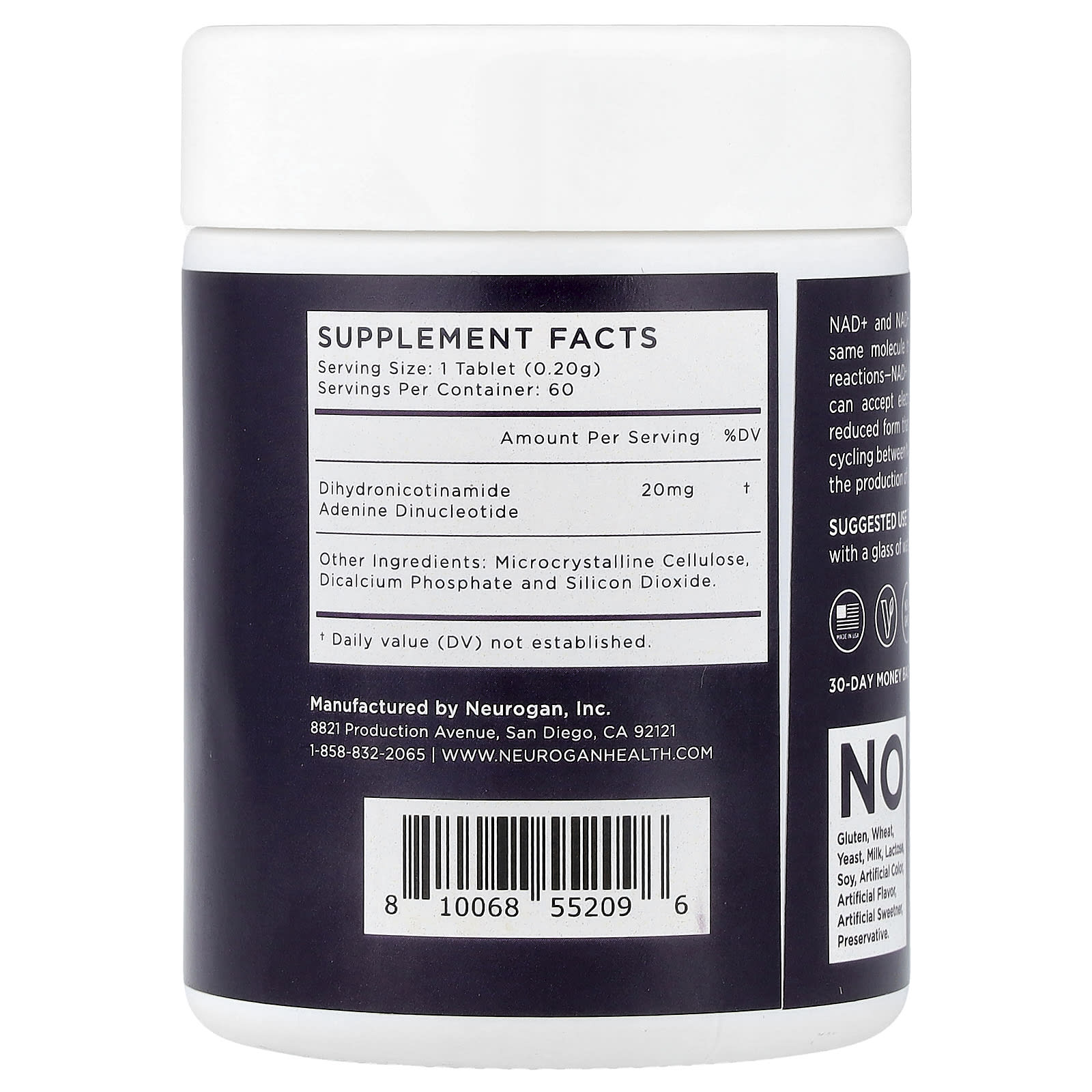 Neurogan Health NADH 20 mg 60 Comprimidos 18 g (063 oz) – Neurogan Health Suplementos Vitaminas Vitamina B Vitamina B3 (Niacina) NADH.