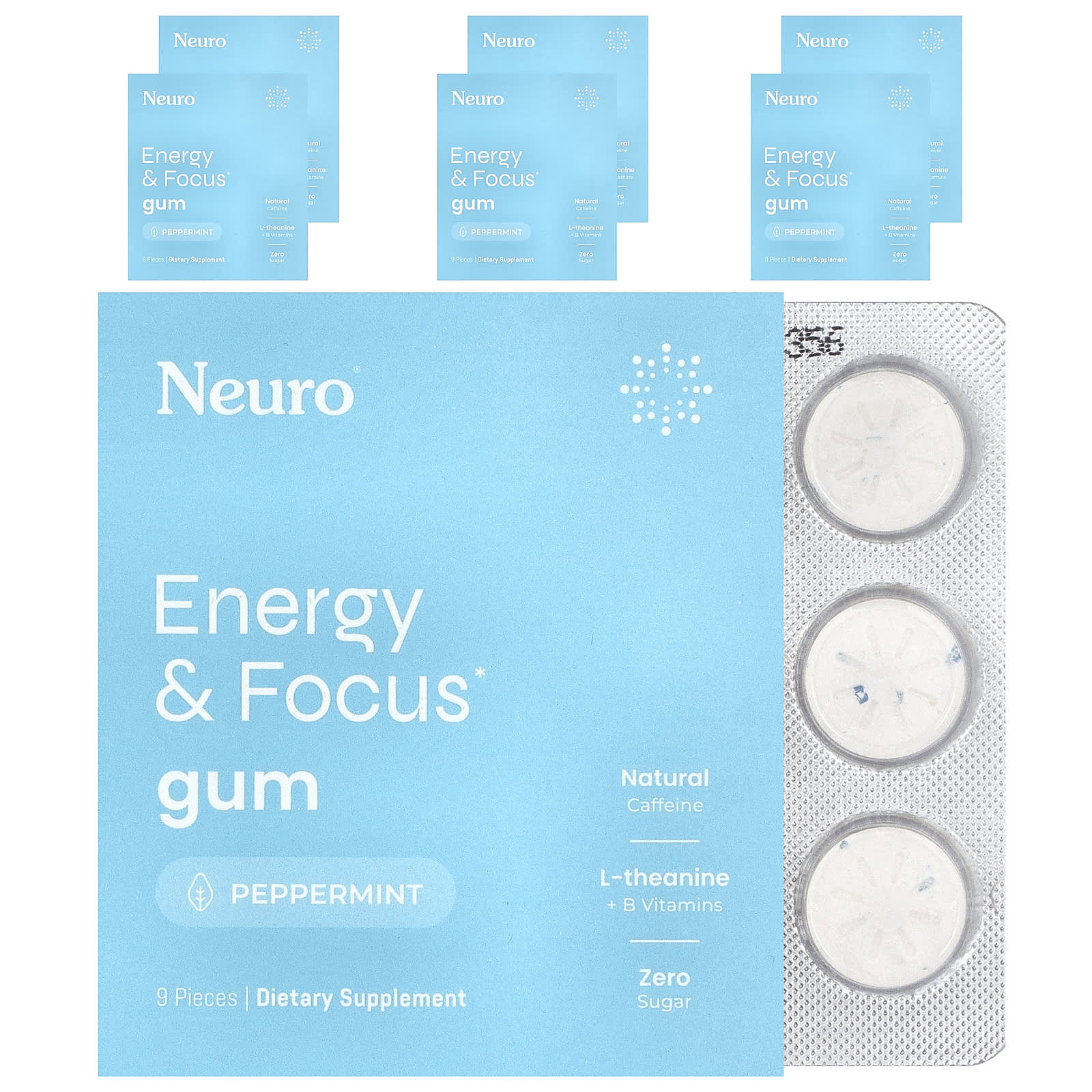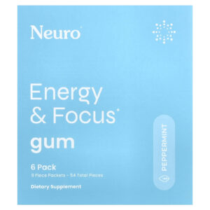 NeuroGum Goma de Energia e Foco Hortelã-Pimenta 6 Pacotes 9 Unidades Cada – NeuroGum Suplementos Cérebro e Cognição Fórmulas para Foco e Memória Saúde Energia.
