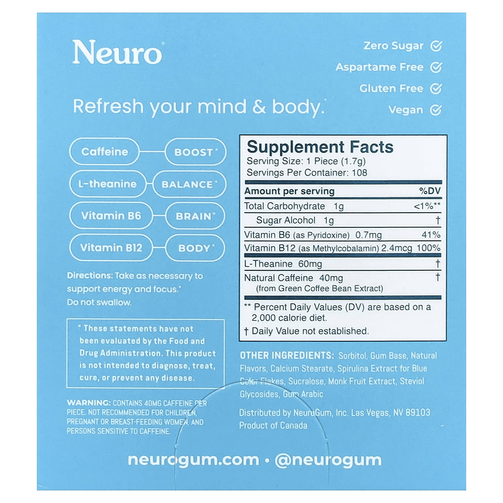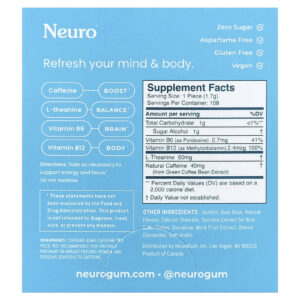 NeuroGum Goma de Energia e Foco Hortelã-Pimenta Pacote com 12 Unidades 9 Unidades Cada – NeuroGum Suplementos Cérebro e Cognição Fórmulas para Foco e Memória Saúde Energia.