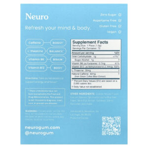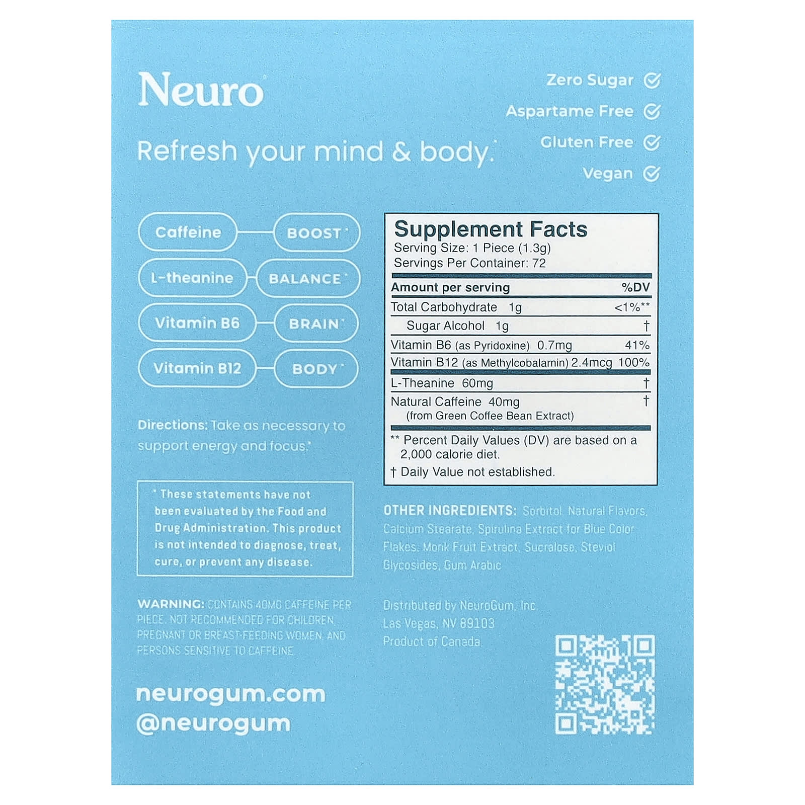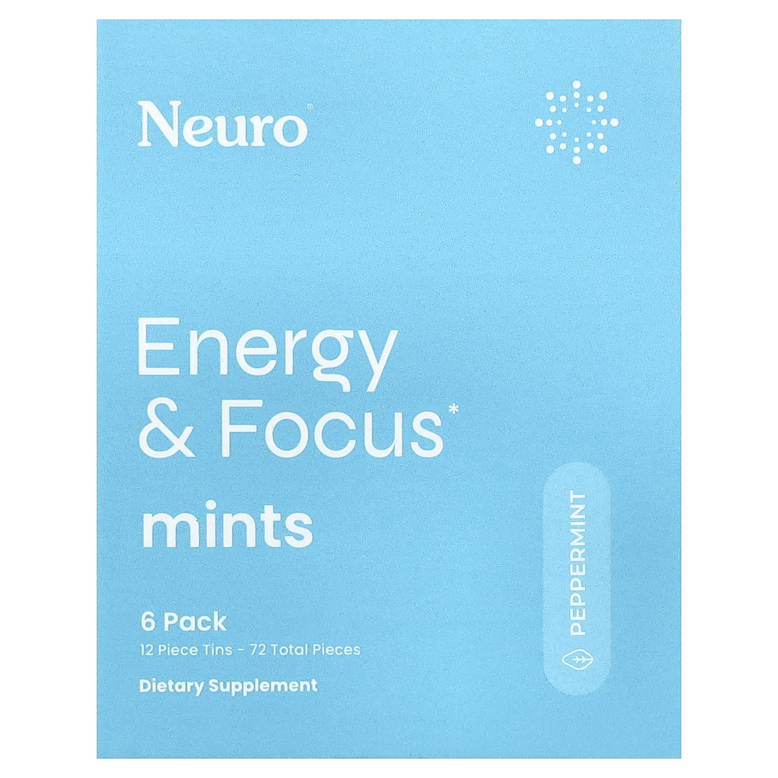 NeuroGum Mentas Energia e Foco Hortelã-Pimenta 6 Pacotes 12 Unidades Cada – NeuroGum Suplementos Cérebro e Cognição Fórmulas para Foco e Memória.