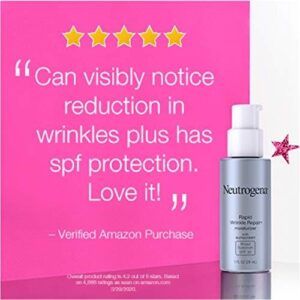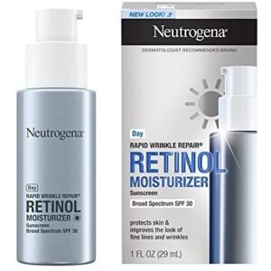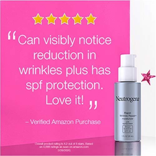 Ajude a hidratar e proteger a pele, reduzindo o visual de rugas com neutrogena Rapid Wrinkle Repair Retinol Anti-Wrinkle Daily Moisturizer com protetor solar SPF 30 de amplo espectro. Este retinol de ação rápida rosto & creme de pescoço reduz visivelmente o visual de linhas finas e rugas enquanto protege contra danos solares. Ótimo para uma rotina diária de skincare, também ajuda a reduzir o visual de manchas escuras & textura e ilumina e iguala o tom de pele. Em um ensaio clínico, as mulheres experimentaram resultados perceptíveis em apenas uma semana de uso. Nossa fórmula antirrugas é clinicamente comprovada para deixar a pele mais lisa com melhor clareza da pele. Formulado com retinol comprovado pelo dermatologista, um ingrediente poderoso que combate linhas finas, embotamento, rugas e manchas escuras. Além disso, o ácido hialurônico, que adiciona umidade de plumping para ajudar a hidratar e rejuvenescer o visual da pele. Este hidratante SPF 30 de amplo espectro está livre de parabenos, óleo mineral e corantes e vem da marca de retinol nº 1 mais usada pelos dermatologistas.