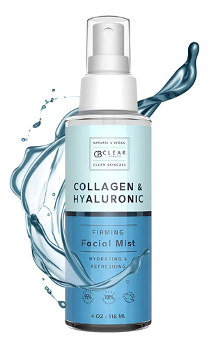 Névoa facial Clear Beauty com ácido hialurônico e colágeno – Testado dermatologicamente, hidrata e tonifica a pele, antienvelhecimento, ingredientes naturais, livre de crueldade, 95% natural – Todos os tipos de pele – 113 g A