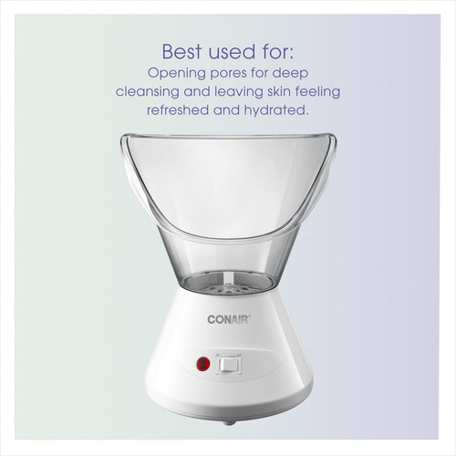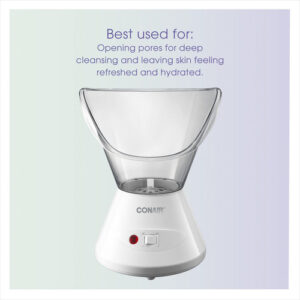 Sistema de sauna facial True Glow by Conair Warm Steam Moisturizing Mist – Sauna facial: projetada para mimar sua pele com uma indulgência caseira semelhante a um spa, a sauna facial True Glow libera uma névoa quente e suave que abre os poros para uma limpeza completa e promove a saúde geral da pele, deixando a pele revigorada. – Limpeza facial profunda: limpe, hidrate e refresque a pele de uma só vez, a qualquer momento. você gosta. O vapor hidratante solta sujeira, óleo e cravos para garantir uma limpeza mais profunda, melhorar o tom e a elasticidade da pele e realçar a beleza natural da pele. – Saúde da pele: a sauna facial True Glow fornece uma névoa quente e hidratante que protege e promove a saúde da pele, enquanto o efeito hidratante da névoa ajuda a se defender contra ressecamento, sinais de envelhecimento e danos ambientais. – Vapor rápido: fácil. Conveniente Indulgente. Em apenas 90 segundos, a sauna facial está pronta para proporcionar uma experiência de spa luxuosamente relaxante. Transforme seu banheiro em um spa doméstico que você pode desfrutar todos os dias. Água destilada é recomendada para cada uso. – Experiência total de spa em casa: de pincéis de limpeza sônicos e vaporizadores faciais a tratamentos com parafina, dispositivos de terapia de luz e muito mais, as ferramentas de cuidados com a pele Conair True Glow ajudam a tornar cada dia um dia de spa.