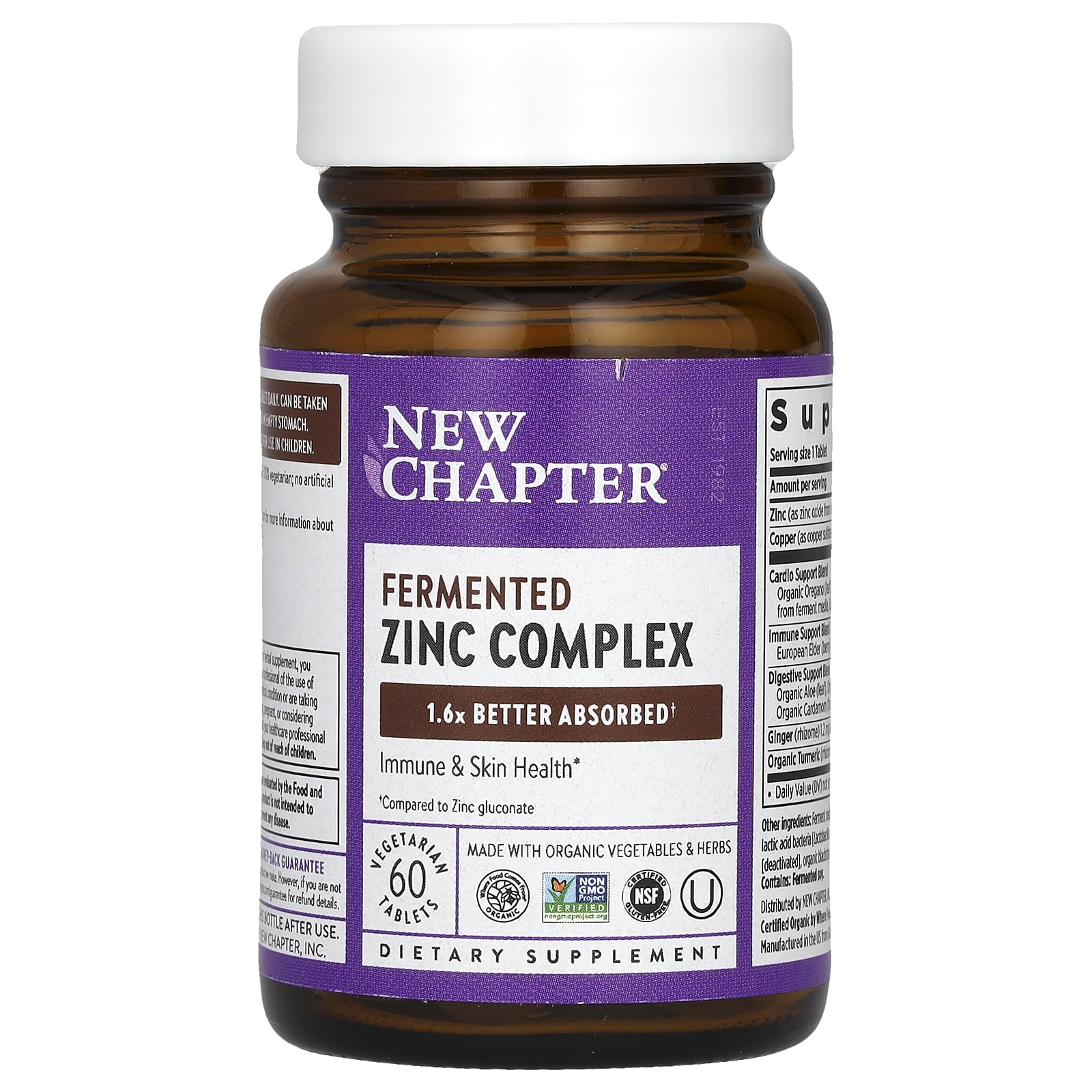 New Chapter Complexo de Zinco Fermentado 60 Comprimidos Vegetarianos – New Chapter Suplementos Minerais Zinco Saúde Gripe e Resfriado.