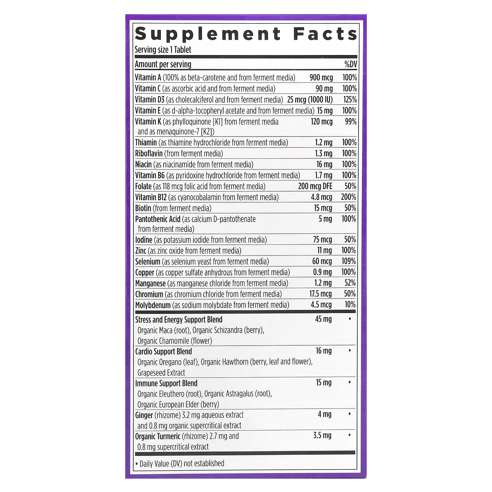 | Vitamina K (como filoquinona [K1] de meio de fermentação e como menaquinona-7 [K2]) | 121 mcg | 100% |