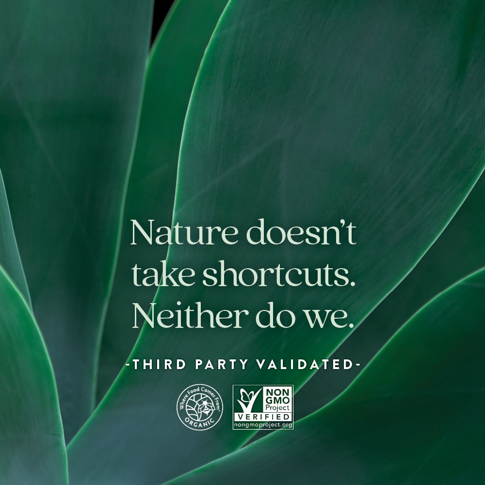 Xarope de tapioca orgânico, agave de inulina orgânica, açúcar de cana orgânico; menos de 2% de: pectina, água, citrato de sódio, ácido cítrico, sabor natural orgânico, óleo de girassol orgânico, cera de carnaúba orgânica, corante (urucum orgânico) e bacillus coagulans mtcc 5856.