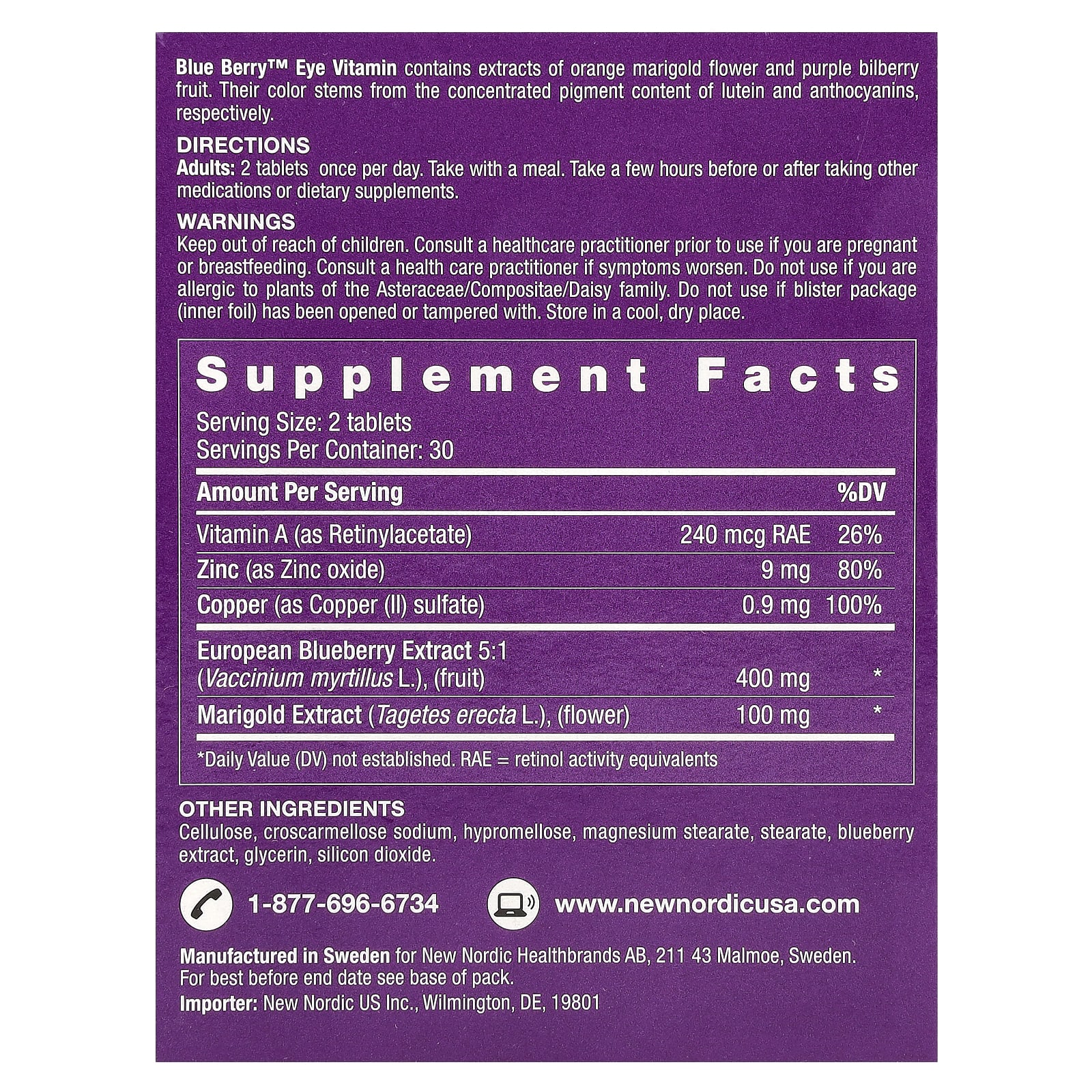 New Nordic Blue Berry™ Vitamina para os Olhos 60 Comprimidos – New Nordic Suplementos Olhos, Ouvidos e Nariz Suplementos para os Olhos.