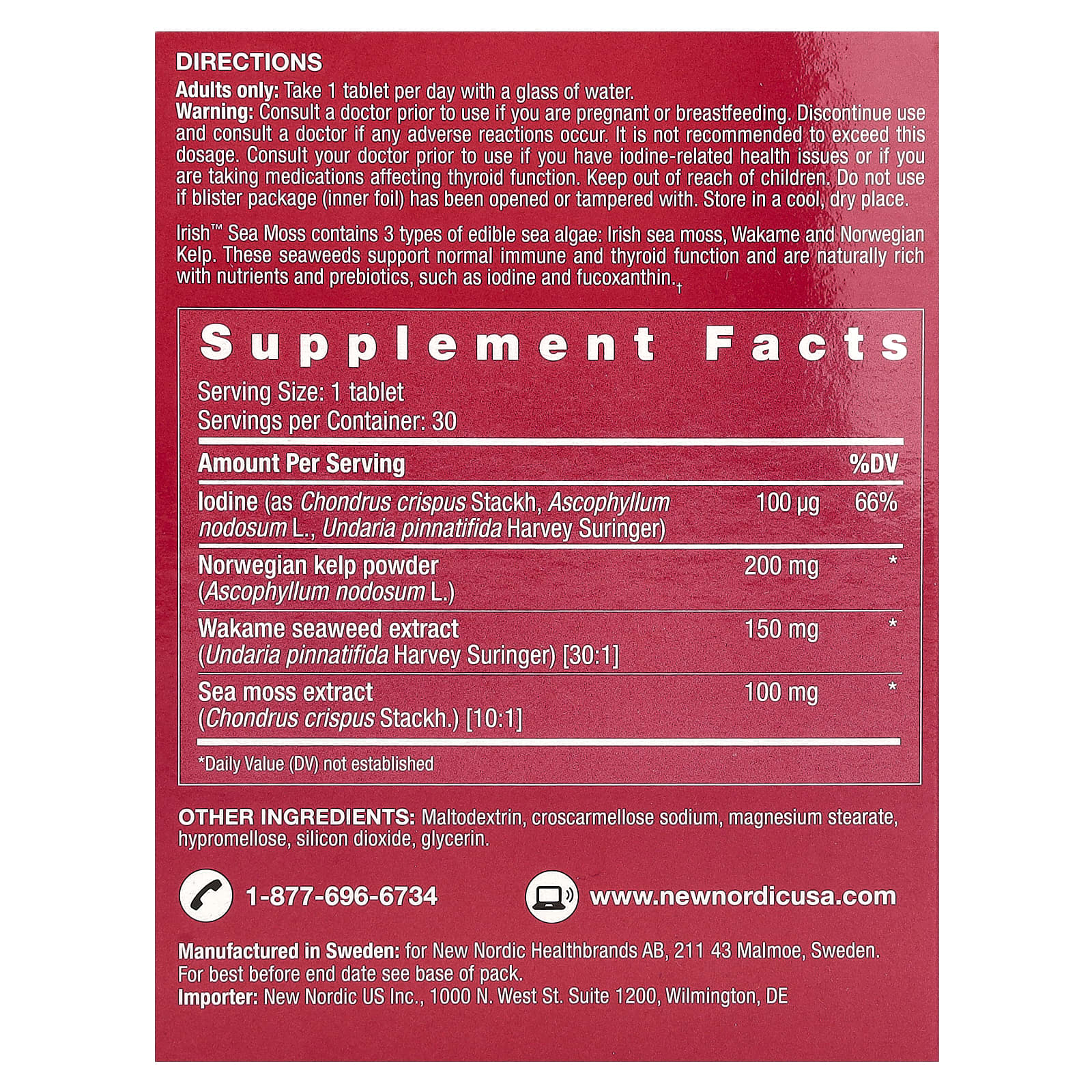 New Nordic Musgo Marinho da Irlanda 30 Comprimidos – New Nordic Suplementos Ervas Fórmulas de Ervas Minerais Musgo marinho.