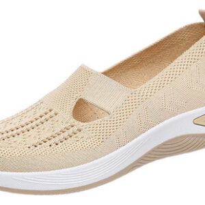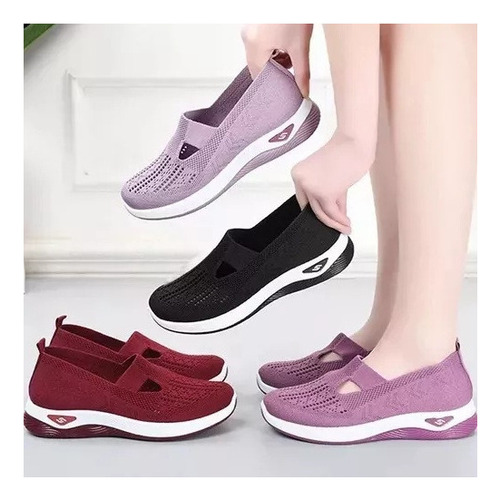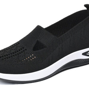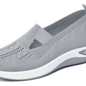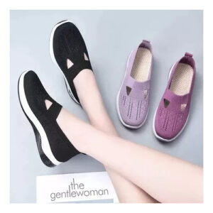 Trata-se de umas sapatilhas de senhora elegantes e confortáveis, com um design simples e desportivo. A parte superior é feita de material de malha respirável de alta qualidade para manter os pés secos e confortáveis. O corpo do sapato é feito de material leve para a fazer sentir mais livre e flexível durante o exercício.