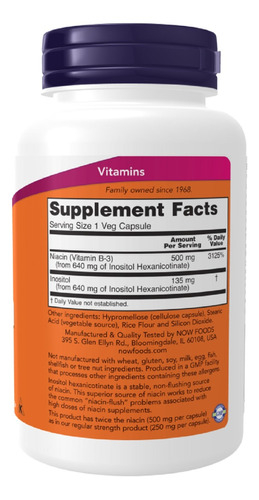 O hexanicotinato de inositol é uma fonte estável, e sem rubor de ácido nicotínico. Esta fonte superior de Ácido Nicotínico atua para reduzir os problemas comuns de "rubor do ácido nicotínico" associados a altas doses de suplementos de ácido nicotínico.