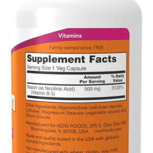 Niacina Vitamina B-3 500mg Now Foods Niacin 100 Capsulas Vegetarianas – Importado