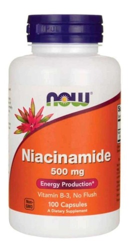 Niacinamida B3 500mg 100 Cápsulas Now Foods Sem Rubor