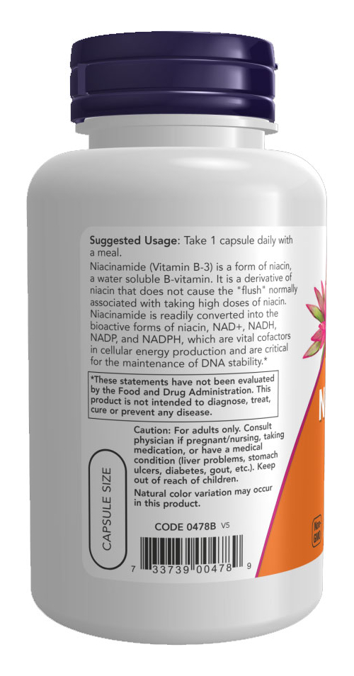 Niacinamida VIT B-3 500mg Now Foods Niacinamide 100 Capsulas Vegetarianas – Importado