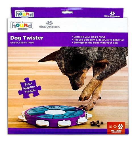 Prepare-se para se esconder, procurar e tratar com este quebra-cabeça para cães de Nina Ottosson. O Dog Twister desafia e ocupa seu cão enquanto eles trabalham para desbloquear guloseimas saborosas escondidas dentro de cada compartimento. Divertido para todos os cães, independentemente da idade, tamanho e raça, o Dog Twister com certeza será seu novo jogo de cachorro favorito!