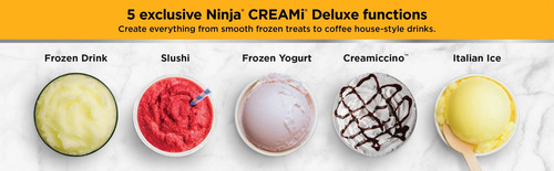 BW5EXP Com o Ninja CreamI Deluxe, você pode transformar quase tudo em sorvete e muito mais. Faça guloseimas clássicas do CreaMi, como sorvete, sorvete e gelato, e misture obras-primas. E agora, faça novas guloseimas que podem ser colhidas e bebíveis do Cream, como Italian Ice, Slushi, Creamiccino, Iogurte Congelado e Bebidas Congeladas, em casa. Características: A