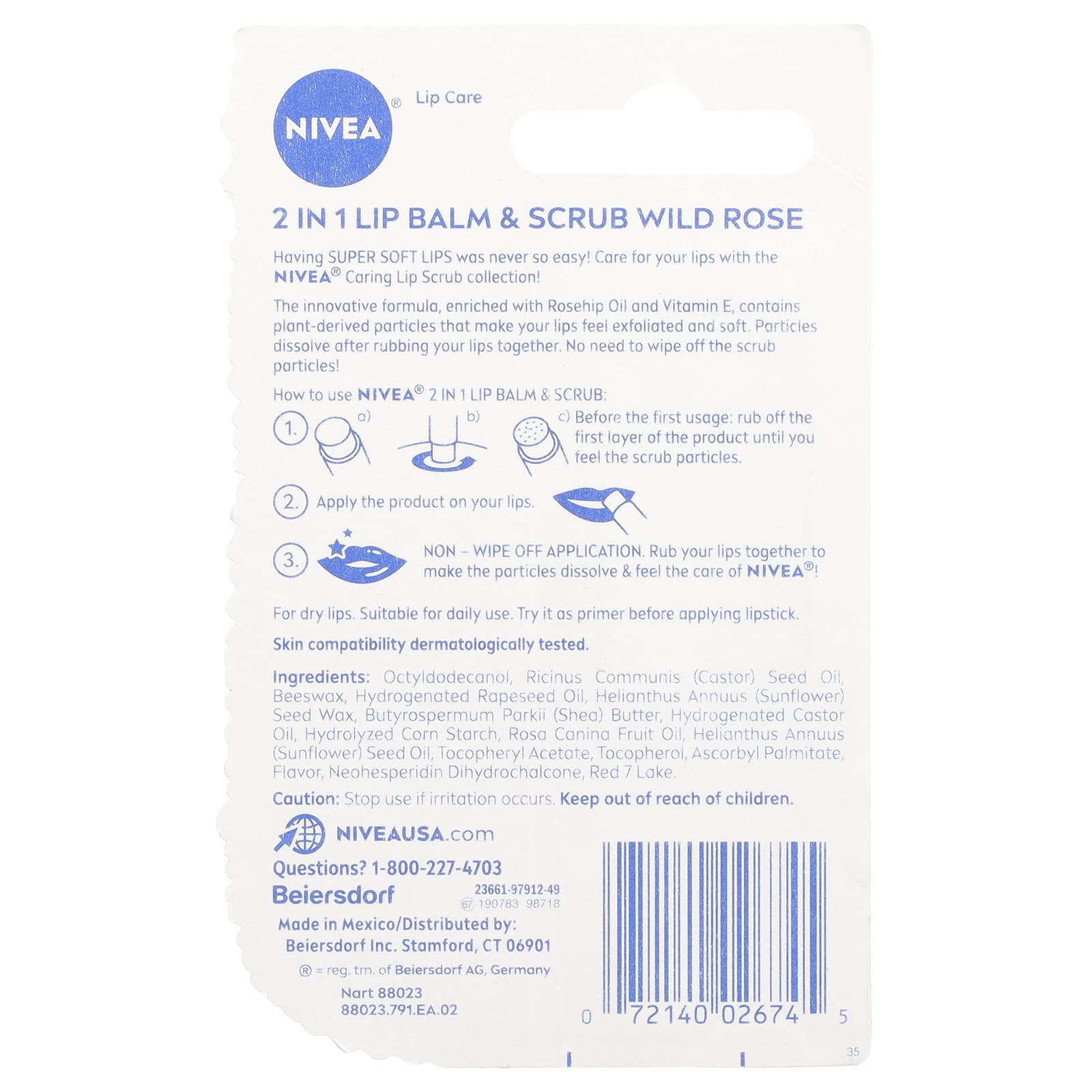 Nivea Esfoliante e Balm Labial 2 em 1 Rosa Silvestre 48 g (017 oz) – Nivea Banho e Cuidados Pessoais Lábios Esfoliante Labial Beleza Beleza por Ingrediente Cuidado para a pele com Vitamina E.