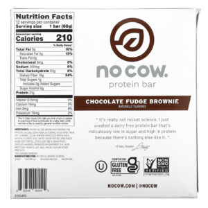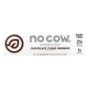 No Cow Barra de Proteína Brownie com Calda de Chocolate 12 Barras 60 g (212 oz) Cada – No Cow Alimentos Barras Nutrição Esportiva Barrinhas e snacks esportivos Barras de Proteína Barras de Proteínas à base de Plantas.