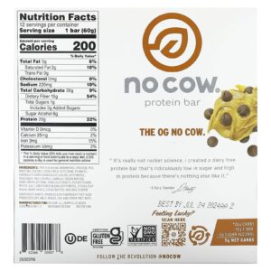 No Cow Barra de Proteína Chips de Chocolate com Manteiga de Amendoim 12 Barras 60 g (212 oz ) Cada – No Cow Alimentos Barras Nutrição Esportiva Barrinhas e snacks esportivos Barras de Proteína Barras de Proteínas à base de Plantas.