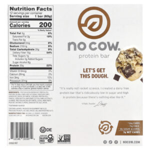 No Cow Barra de Proteína Massa de Cookie com Lascas de Chocolate 12 Barras 60 g (212 oz) Cada – No Cow Alimentos Barras Nutrição Esportiva Barrinhas e snacks esportivos Barras de Proteína Barras de Proteínas à base de Plantas.