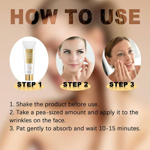 NO rnApagador instantâneo de rugas Skip the Line, atraente apagador instantâneo de rugas que restaura a elasticidade da pele, preenche e desfoca as rugas Creme antienvelhecimento para rosto, pescoço e bochechas O apagador instantâneo de rugas Skip the Line preenche e desfoca as rugas. Este creme sem cola restaura a elasticidade da pele, ajuda a reduzir a formação de linhas finas e rugas, proporciona longa duração hidrata e restaura a pele elástica e firme. O creme facial pode firmar e apertar a pele, restaurar a elasticidade e firmeza da pele e pode ser usado ao redor dos olhos. Pescoço, testa, bochechas, etc.nLeve e não oleoso Aproveite os benefícios do nosso hidratante antienvelhecimento, que é leve, não oleoso e de rápida absorção. nFácil de usar. Primeiro, lave e seque o rosto. Aplique uma quantidade adequada deste creme rejuvenescedor anti-rugas no rosto, pescoço e corpo e massageie suavemente até que seja absorvido. nPode ser usado dia ou noite. Adequado para todos os tipos de pele. Se você tem pele oleosa, seca ou mista, pode contar com nosso creme facial removedor instantâneo de rugas para nutrir e hidratar rapidamente sua pele. rnAlém disso, se você tiver alguma dúvida sobre o produto após a compra, entre em contato conosco usando os detalhes do pedido no Personall. Responderemos dentro de 12 horas para responder a quaisquer perguntas que você possa ter. *Recomendamos que você não faça reivindicações ao Mercado Libre. *Se você fizer uma reclamação no Personall, espera-se que a plataforma leve até 10 dias úteis para analisá-la. No entanto, se você entrar em contato conosco diretamente, seu problema será resolvido de forma rápida e eficaz.