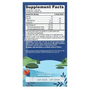 Arctic Cod Liver Oil purificado, cápsula softgel (gelatina, glicerina, água, sabor), sabor natural, rrr-alpha tocopherol (antioxidante), extrato de alecrim (um conservante natural).