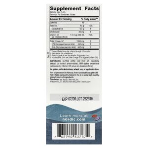 Arctic Cod Liver Oil purificado, extrato de alecrim (um conservante natural), RRR-alfa tocoferol (antioxidante), vitamina D3 (óleo de oliva, colecalciferol).