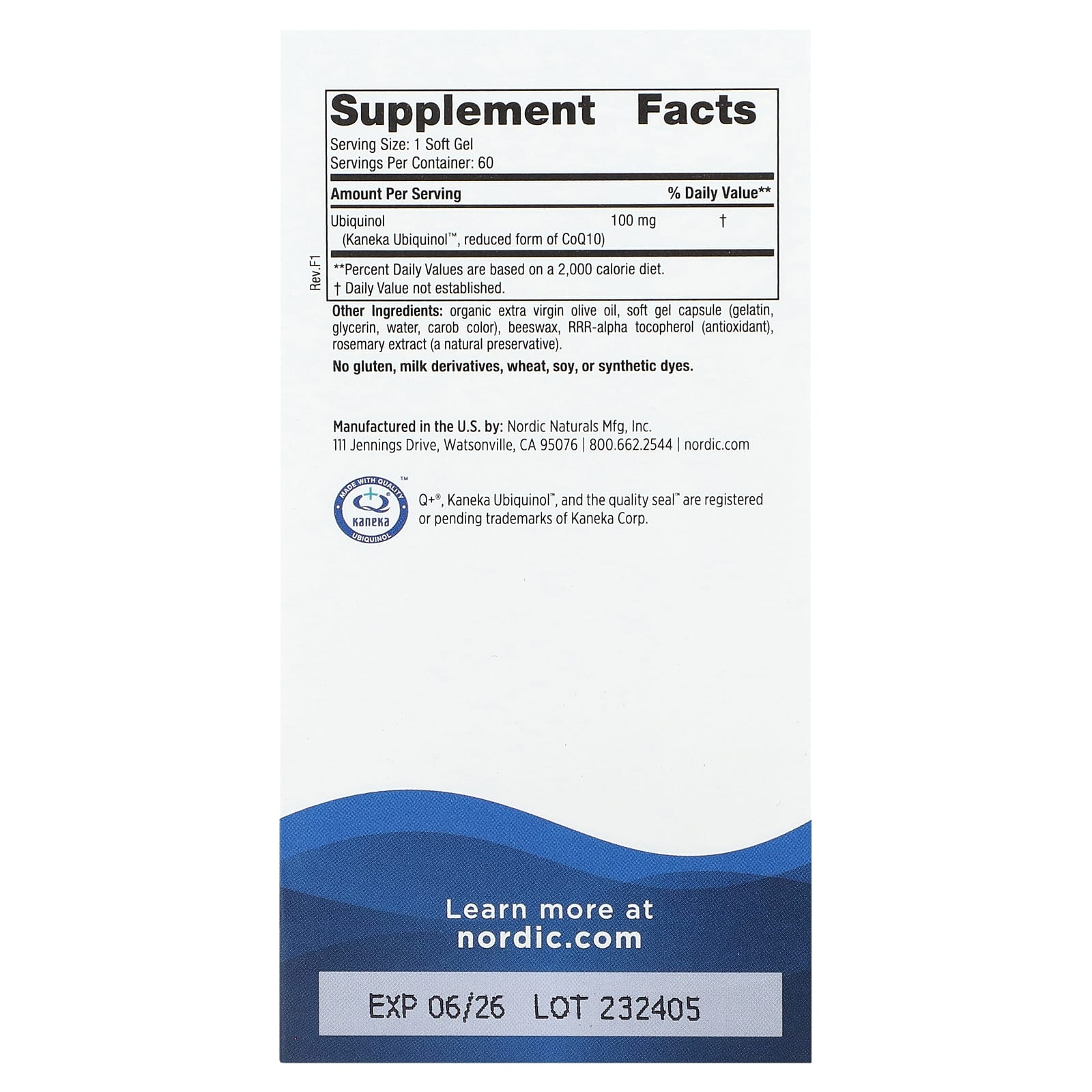 Nordic Naturals CoQ10 Ubiquinol 100 mg 60 Softgel – Nordic Naturals Suplementos Antioxidantes Coenzima Q10 (Ubiquinona) Ubiquinol.