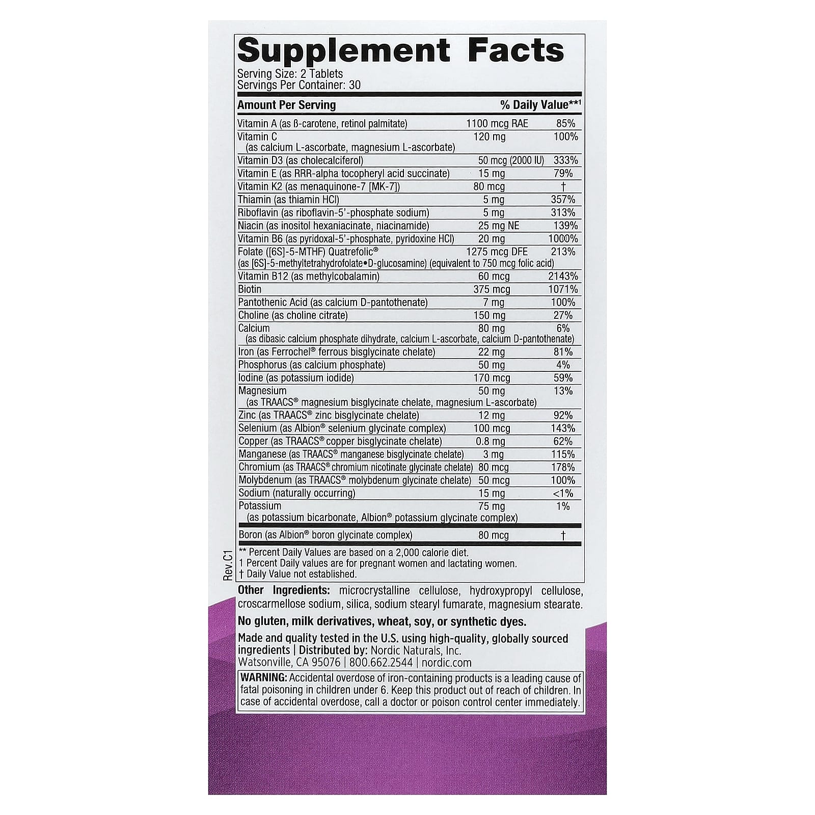 Os comprimidos Multivitamínico Pré-natal fornecem suporte nutricional para uma gravidez saudável em formas biodisponíveis que o corpo pode utilizar facilmente. Formulados para atender às maiores demandas de nutrientes da gravidez, esses comprimidos fornecem uma dose saudável de vitamina B6, folato, ferro em uma forma não constipante que é suave para o estômago e minerais quelados para melhor absorção.