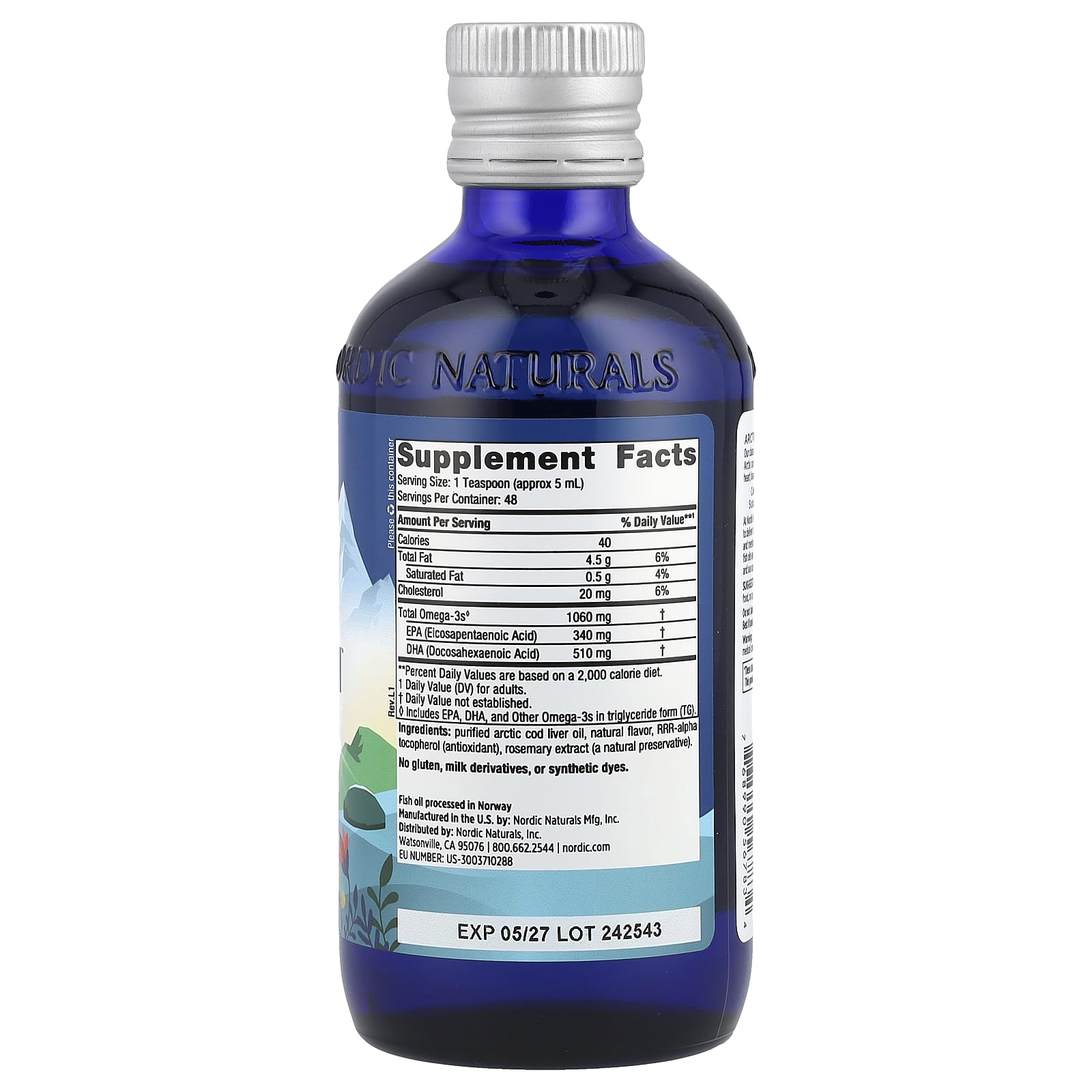 Nosso clássico Arctic Cod Liver Oil™ sempre foi derivado de bacalhau 100% selvagem do Ártico; nenhum outro óleo de peixe é usado. O EPA e o DHA do Ômega-3 contribuem para a função saudável do coração, do cérebro e do sistema imunológico.