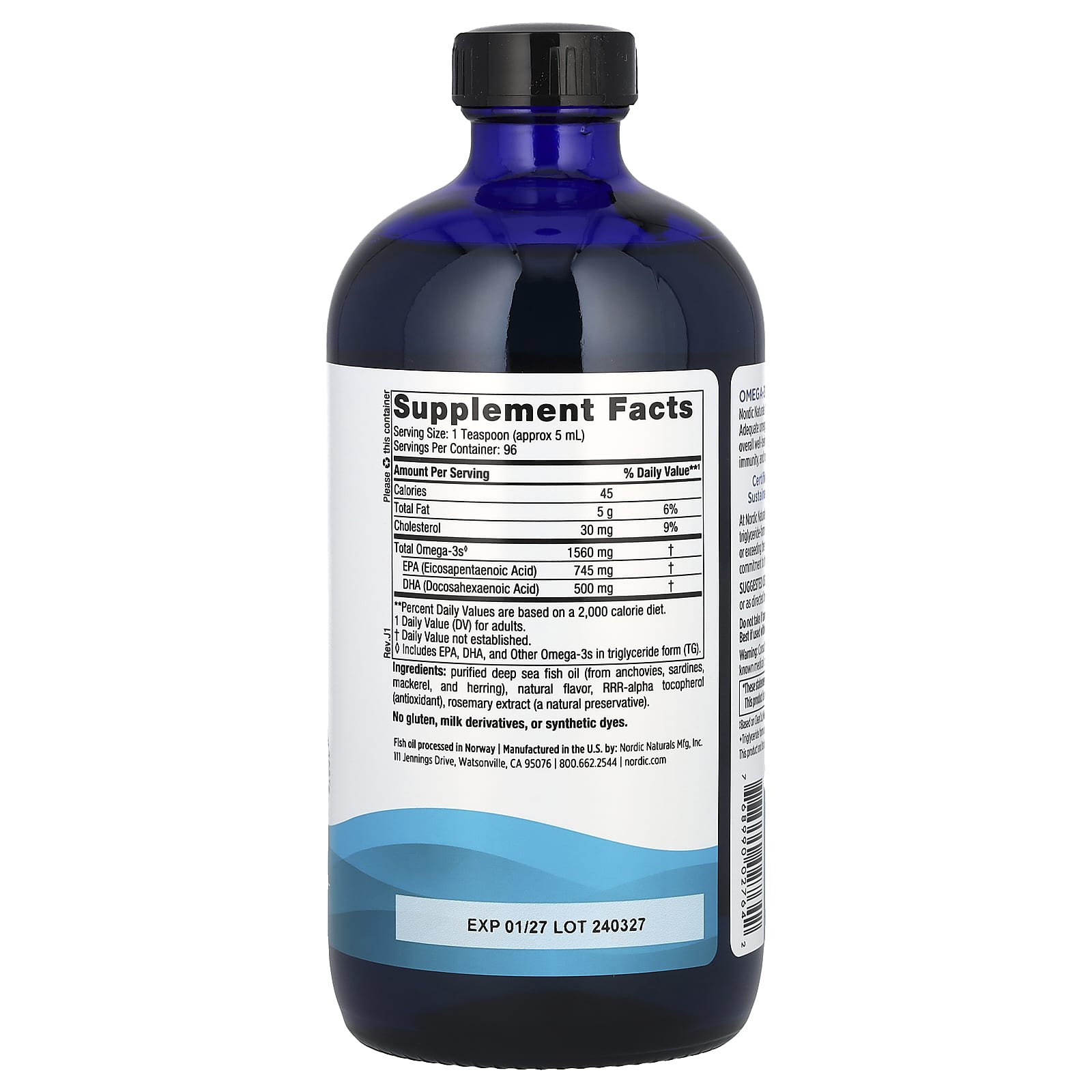 Cada lote de óleos de peixe da Nordic Naturals é testado por um laboratório certificado por terceiros quanto a toxinas ambientais, incluindo metais pesados. Todos os óleos de peixe estão na forma de triglicerídeos e superam os mais rígidos padrões internacionais de pureza e frescura.