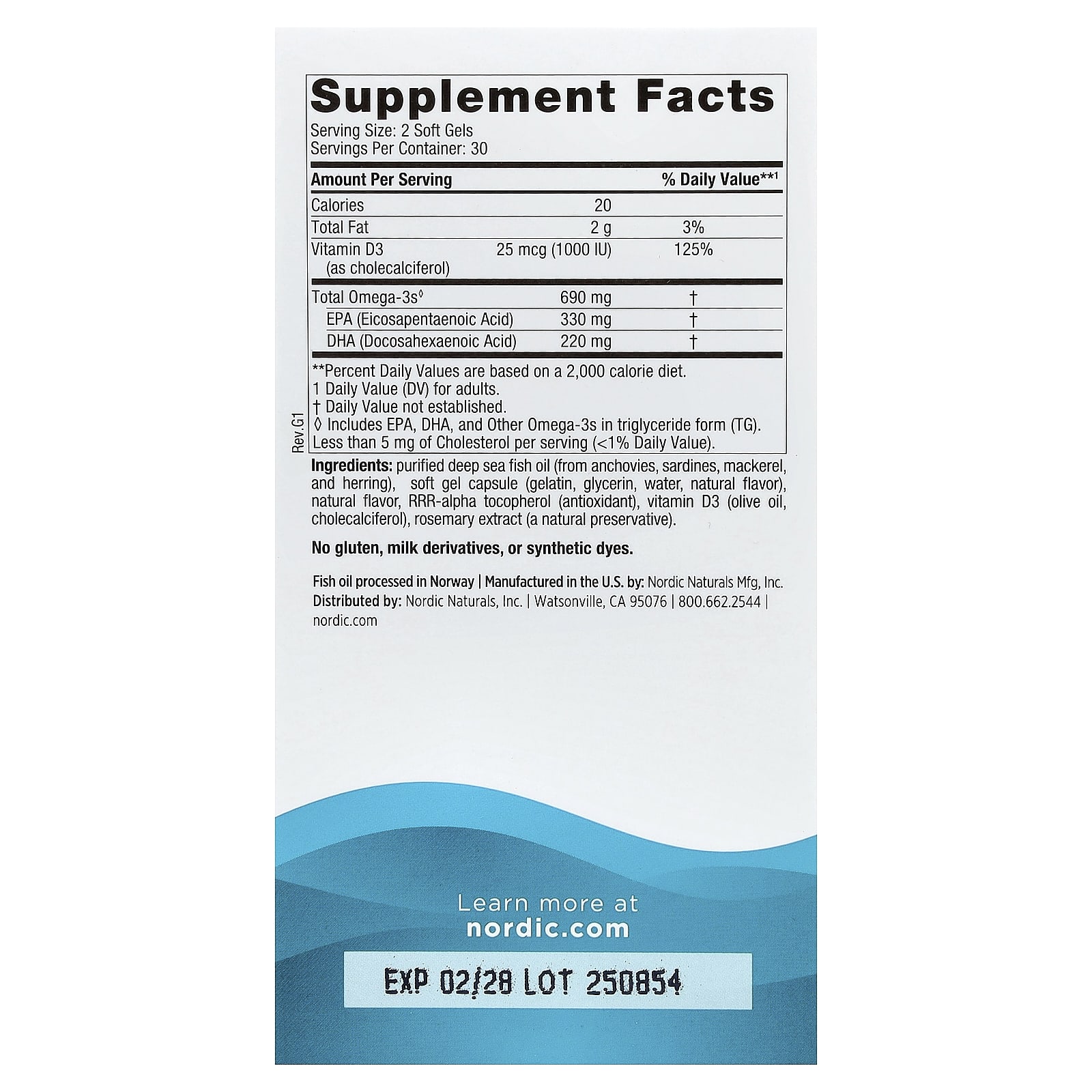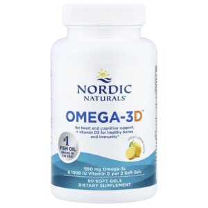 Omega-D3™ da Nordic Naturals fornece 690 mg de ômega-3 mais 1.000 UI (25 mcg) de vitamina D3 por dose. Omega-3D oferece suporte combinado para manter o coração, os ossos, o bem-estar e a imunidade saudáveis.
