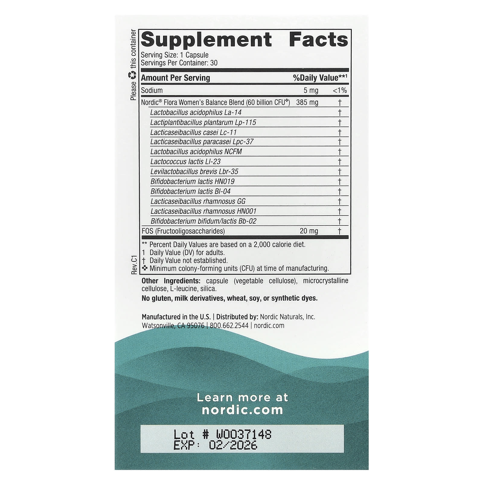 O Probiótico Nordic Flora ™ Women’s Balance é uma mistura de doze cepas probióticas com 60 bilhões de culturas que contribuem para a saúde vaginal, a regularidade e o conforto intestinal. Além disso, esta fórmula fornece FOS prebiótico para promover a viabilidade probiótica e auxiliar os micróbios benéficos naturalmente presentes no intestino. Tomado diariamente, esse probiótico ajuda a equilibrar a flora vaginal e a manter um ecossistema vaginal saudável.