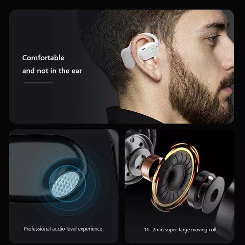 Fones de ouvido sem fio com cancelamento de ruído por condução óssea de ouvido aberto, fones de ouvido estéreo leves para esportes ao ar livre compatíveis com bluetooth.