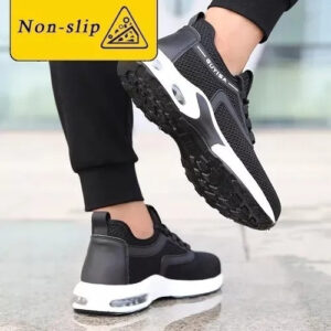 Parte superior em malha respirável. Durável e antiabrasão, respirável e moderno.