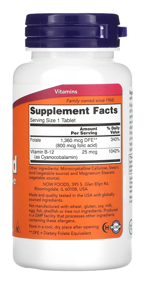 Ácido Fólico e Vitamina B12 800mcg Now Foods 250Tabs – No Brasil