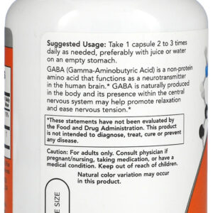Now Foods Gaba/Ácido Gama 500mg com Vitamina B6 100Caps Veg Suporte a Neurotransmissores Suporte à Regulação Processos Químicos no Organismo / NO Brasil-TOPSHOP O Ácido Gama ou GABA da Now Foods é um aminoácido que funciona como um neurotransmissor no cérebro humano e é produzido naturalmente no corpo, sendo que sua presença no sistema nervoso central pode ajudar a promover o relaxamento e alívio de tensão. Esta fórmula de 500mg desenvolvida pela Now foods combina todos os benefícios do ácido Gama com a vitamina B6 um composto que atua também em diversas reações do metabolismo, tais como aminoácidos e as enzimas que ajudam a regular os processos químicos do corpo. Outros Ingredientes: Hipromelose (cápsula de celulose), Farinha de Arroz, Dióxido de Silício e Ácido Esteárico (fonte vegetal). Fabricado sem trigo, glúten, soja, milho, leite, ovo, peixe, marisco ou ingredientes de nozes. Recomendação de uso: Tome 1 cápsula 2 a 3 vezes ao dia conforme necessário, de preferência com suco ou água com o estômago vazio. Cuidados: Apenas para adultos. Busque orientação antes de utilizar este produto. Mantenha fora do alcance de crianças. Pode ocorrer variação natural da cor neste produto. Guarde em local fresco e seco após a abertura Dimensões: 11,0 x 5,0 x 5,0 cm Peso: 0,118 Itens Inclusos: 1x Frasco com 100 Caps Veg VALIDADE LONGA.