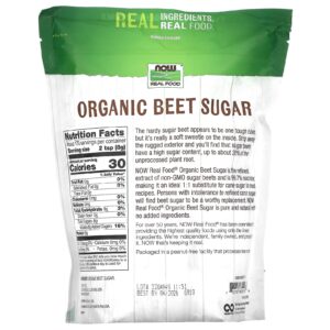 O Açúcar de Beterraba Orgânica da NOW Real Food® é o extrato refinado de beterraba não OGM e tem 99,7% de sacarose, o que a torna um substituto ideal para o açúcar de cana na maioria das receitas. Pessoas com intolerância ao açúcar de cana refinado descobrirão que o açúcar de beterraba é um substituto válido. O Açúcar de Beterraba Orgânica da NOW Real Food® é puro e natural, sem adição de ingredientes.