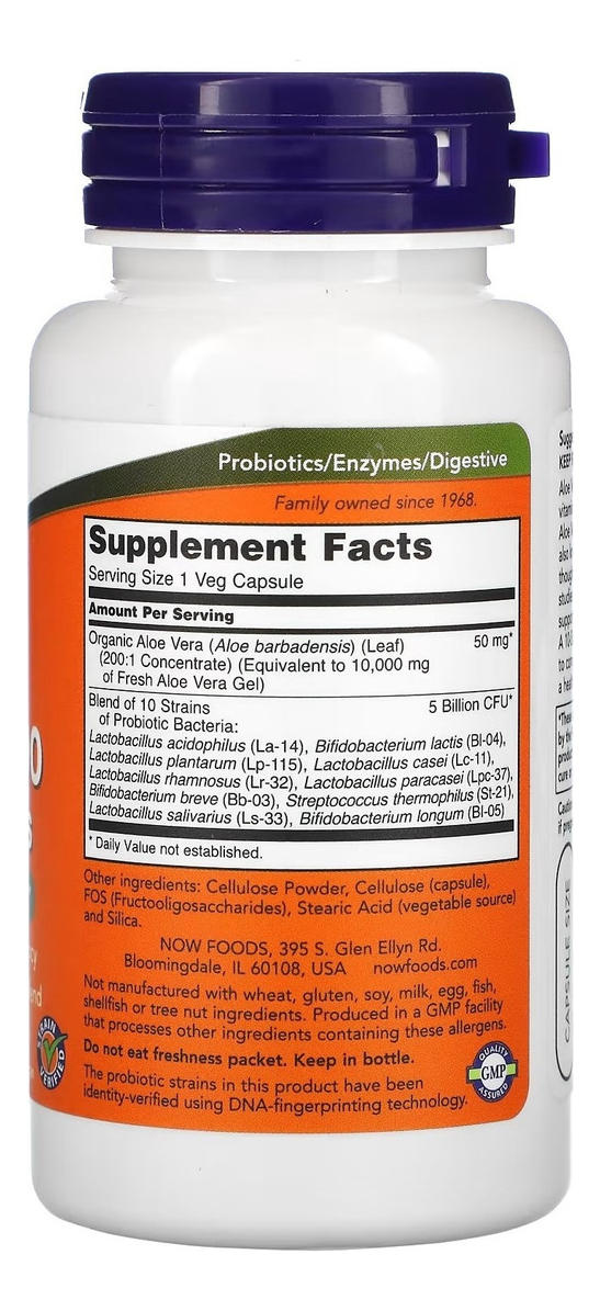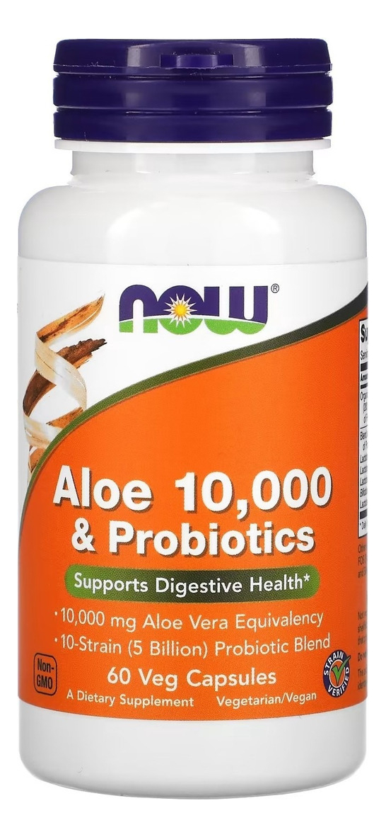 Now Foods Aloe 10,000 E Probiotics 60 Cápsulas