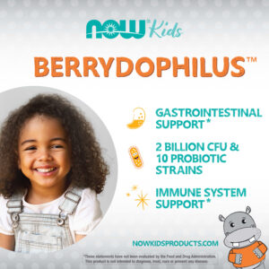 NOW® BerryDophilus ™ fornece 2 bilhões de UFC de uma combinação de 10 cepas bacterianas probióticas clinicamente validadas projetadas para auxiliar a saúde gastrointestinal e a função saudável do sistema imunológico. A flora intestinal saudável também ajuda a criar um ambiente favorável à absorção de nutrientes. BerryDophilus ™ pode ser usado por adultos e crianças. Adoçado com xilitol, BerryDophilus ™ não prejudica os dentes e tem um ótimo sabor.