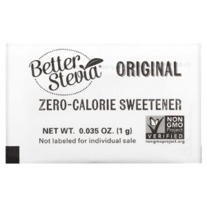 BetterStevia® é um adoçante derivado de plantas com zero caloria, não OGM e um substituto perfeitamente saudável para o açúcar de mesa e os adoçantes artificiais. Ao contrário dos adoçantes químicos, BetterStevia® é um extrato de estévia puro e é facilmente utilizado pelo corpo e metabolizado da mesma forma que os nutrientes. Com um sabor que é naturalmente de 60 a 100 vezes mais doce do que o açúcar refinado, uma pequena quantidade é o suficiente para adoçar suas bebidas, alimentos e sobremesas favoritas! No entanto, nem toda estévia é igual. Tomamos medidas especiais para preservar as qualidades naturais da estévia nesta estévia única, pura e de melhor sabor.