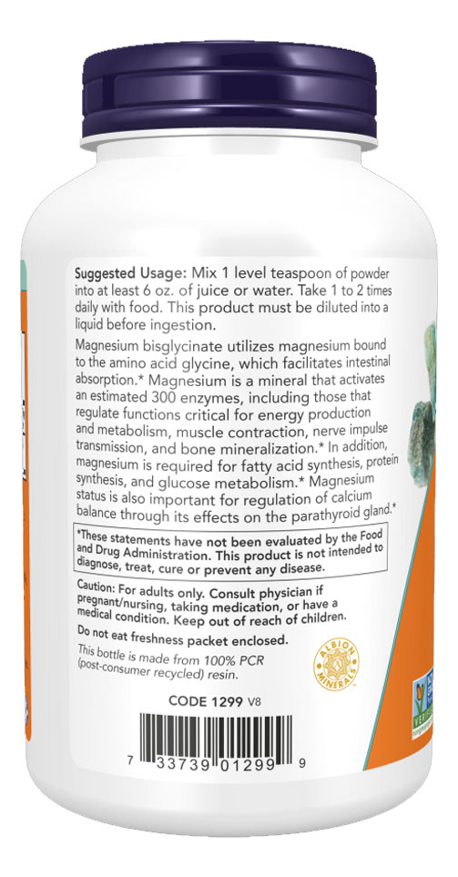 Bisglicinato de Magnésio em Pó Now Foods 227g Produto Importado