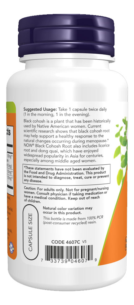 Now Foods Black Cohosh Root 80mg 90 Veg Cáps Importado