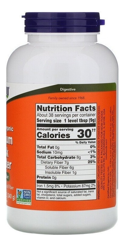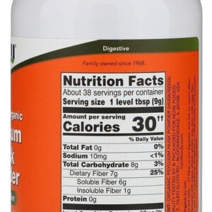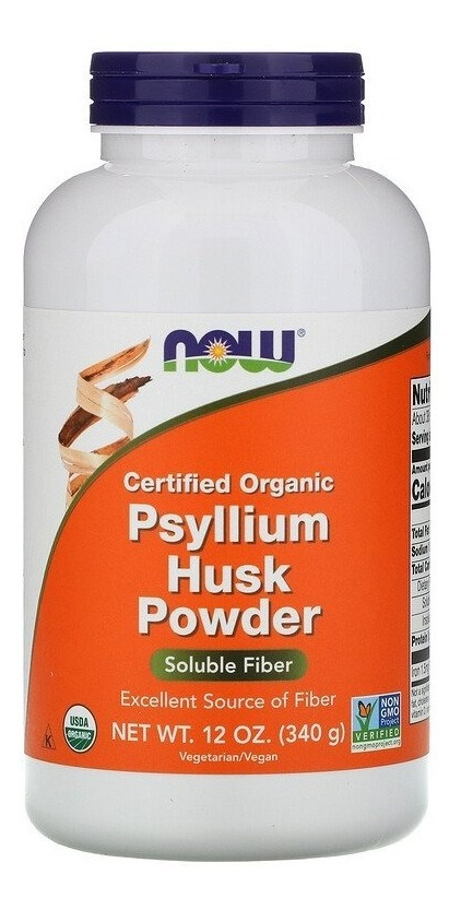 Now Foods, cascas de psyllium em pó orgânicas 100% certificadas, 12 onças (340 g)