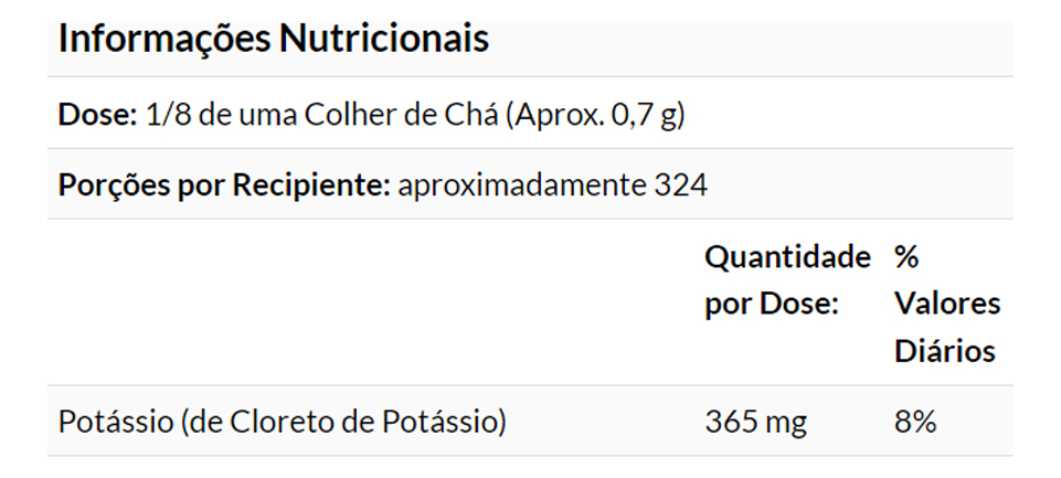 1. Suporte Nutricional Eficiente: O Cloreto de Potássio da oferece um suporte nutricional focado, sendo uma opção para quem busca um complemento específico para a sua rotina alimentar. Com 227g por embalagem, este produto é uma escolha prática para uso diário.