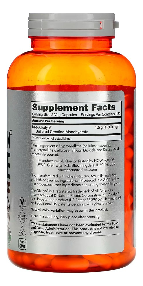 Creatina Kre-Alkalyn 750mg Now Foods 240Cáps Importado